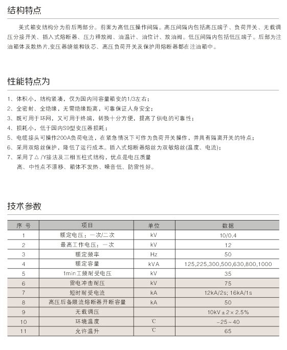YB預裝箱式變電站適用于6kV和10kV環網供電,雙電源供電或終端供電系統中,作為高壓配電計量,補償控制和保護裝置。預裝箱式變電站內除裝有變壓器外,四工位負荷開關,二工位負荷開關,后備保護熔斷器及插入式熔斷器;低壓側按用戶要求裝配控制電器,配電電器。補償裝置及電能計量表等。